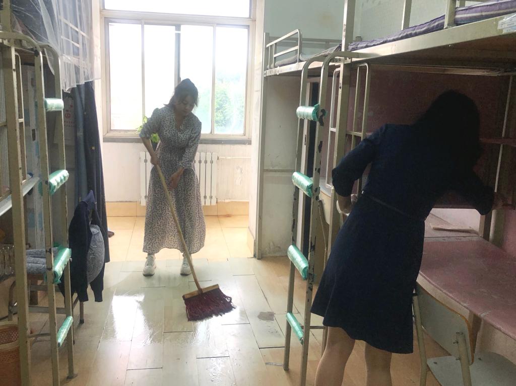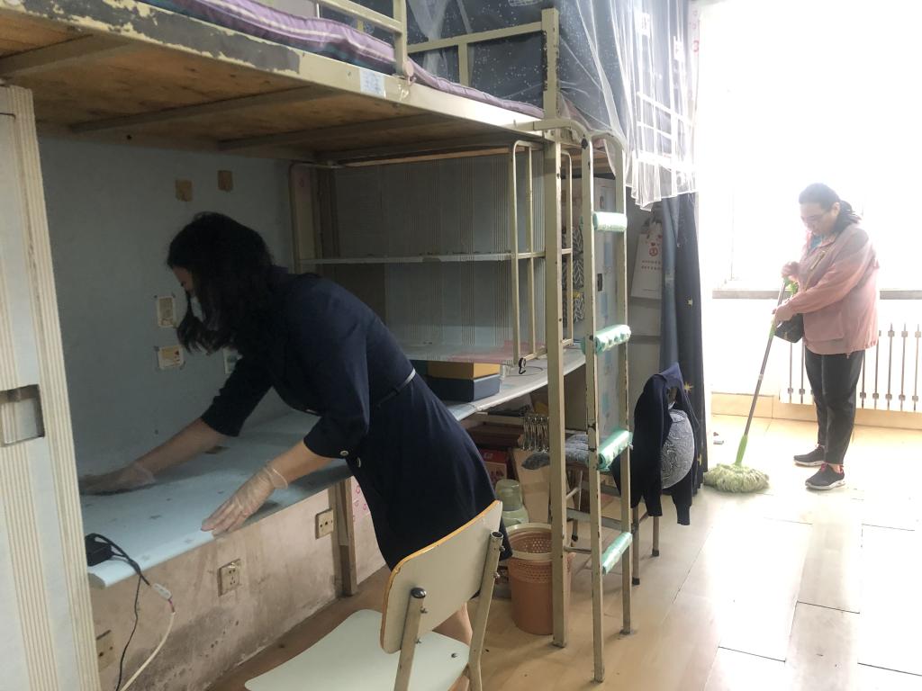 活动中,党员们积极踊跃,不怕脏累,为员工打扫寝室卫生,并在每个房间窗台处摆放绿植,用来净化空气,以实际行动践行“三全育人”理念,为员工顺利返校做好充分准备。