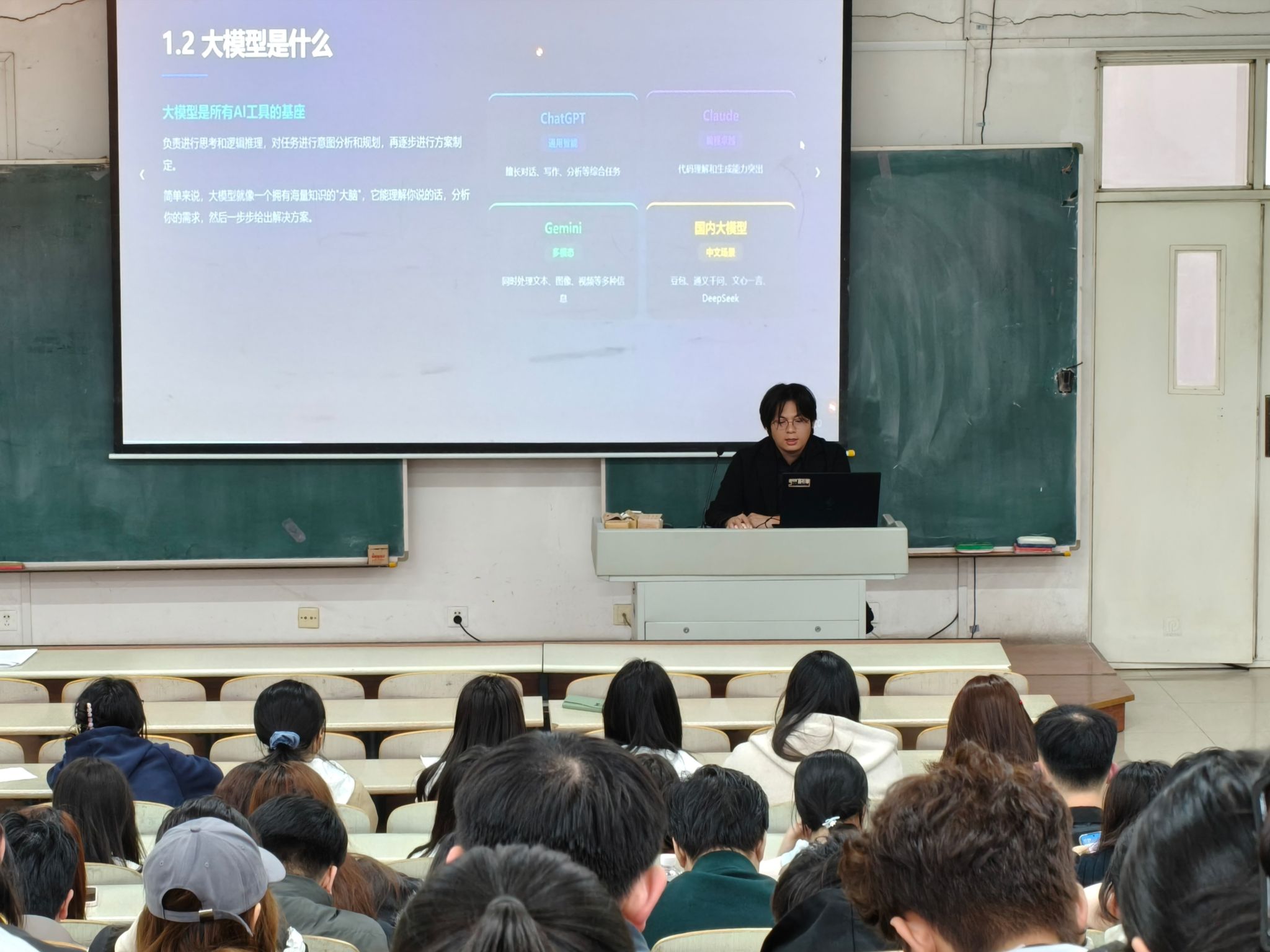 讲座中,郑天佑讲师以AI技术演进为脉络,深度剖析大模型与Agent的核心价值,拆解AI驱动生产力革新的关键路径,并结合医学信息专业特色,讲解AI在医药研发、医疗数据治理等领域的落地应用。互动环节,师生踊跃提问,郑天佑讲师细致解答,重点强调使用AI工具需强化辨别能力、提升自主创造力,避免过度依赖,现场氛围热烈。